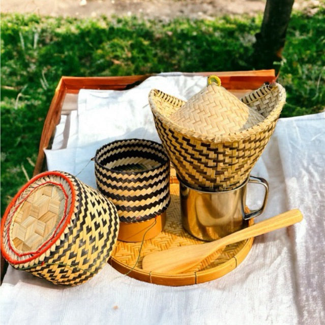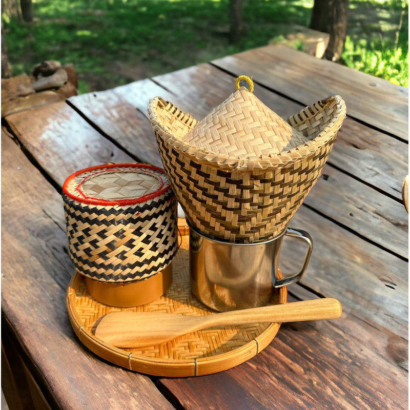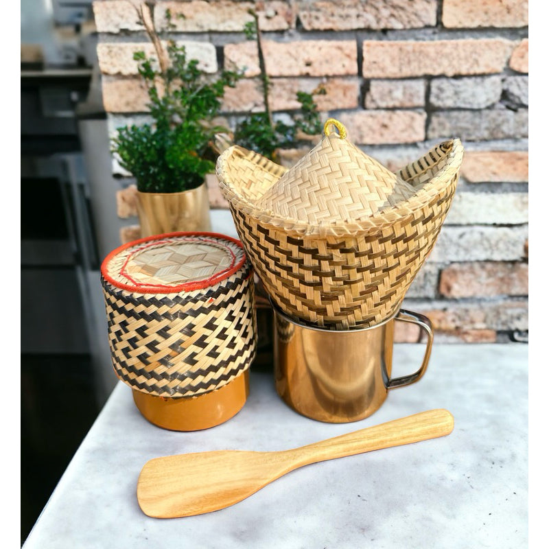 **Thai sticky rice steamer set** is a traditional cooking apparatus used to steam sticky rice (also known as glutinous rice), a staple in Thai and Lao cuisine. The set typically includes two main components: