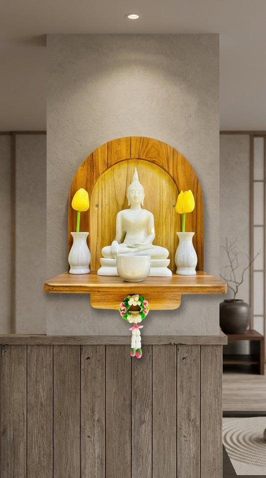 Handmade Golden Teak Buddha Altar Shelf | Zen Home Altar