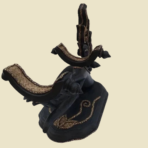 Handgefertigter Weinflaschenhalter aus Regenbaumholz | Künstlerische Dekoration