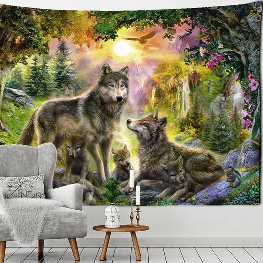 Mystische Wölfe Wandteppich | Psychedelische Deko