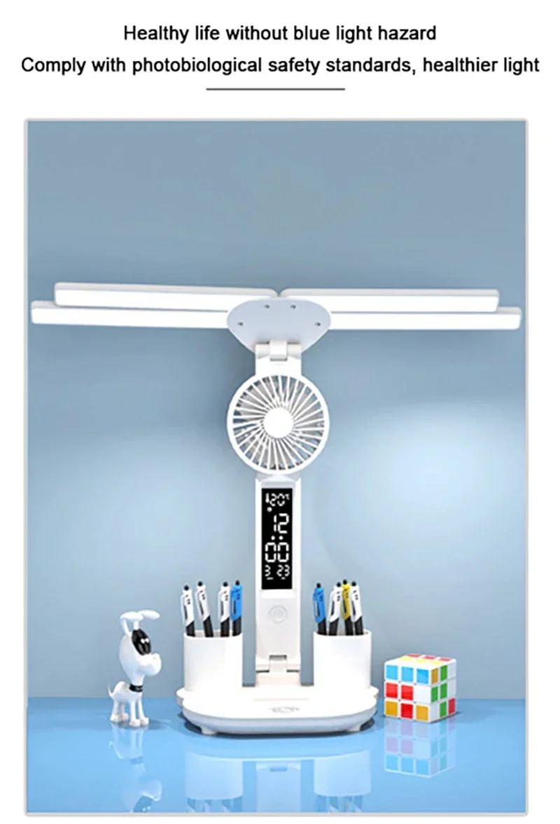 3-in-1 Rechargeable Desk Lamp: Fan, Clock, and Dimmable Light